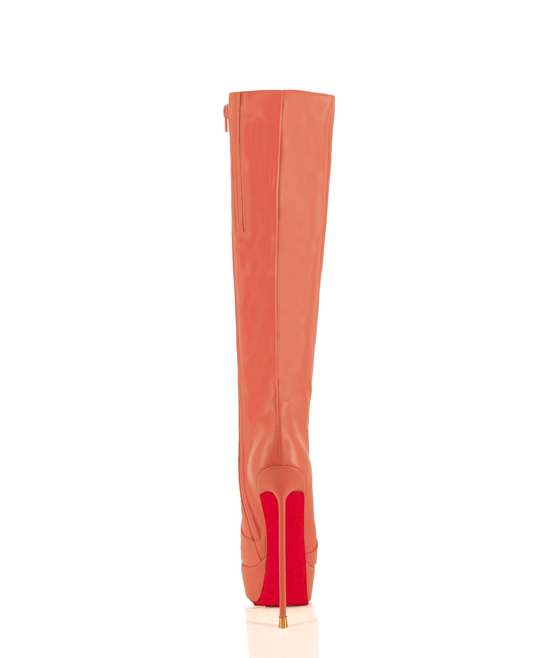 Demona 150 English Tan Nappa Knee boots are crafted from genuine soft nappa smooth leather. Knee boots with elegant and versatile style. These boots are made exclusively for each customer so You can choose your favorite custom for them. Choose the sole and inside color and if you prefer the heel leather covered or not. This pair of platform boots is designed with perfect finishes, visible platform and thin stiletto heel.