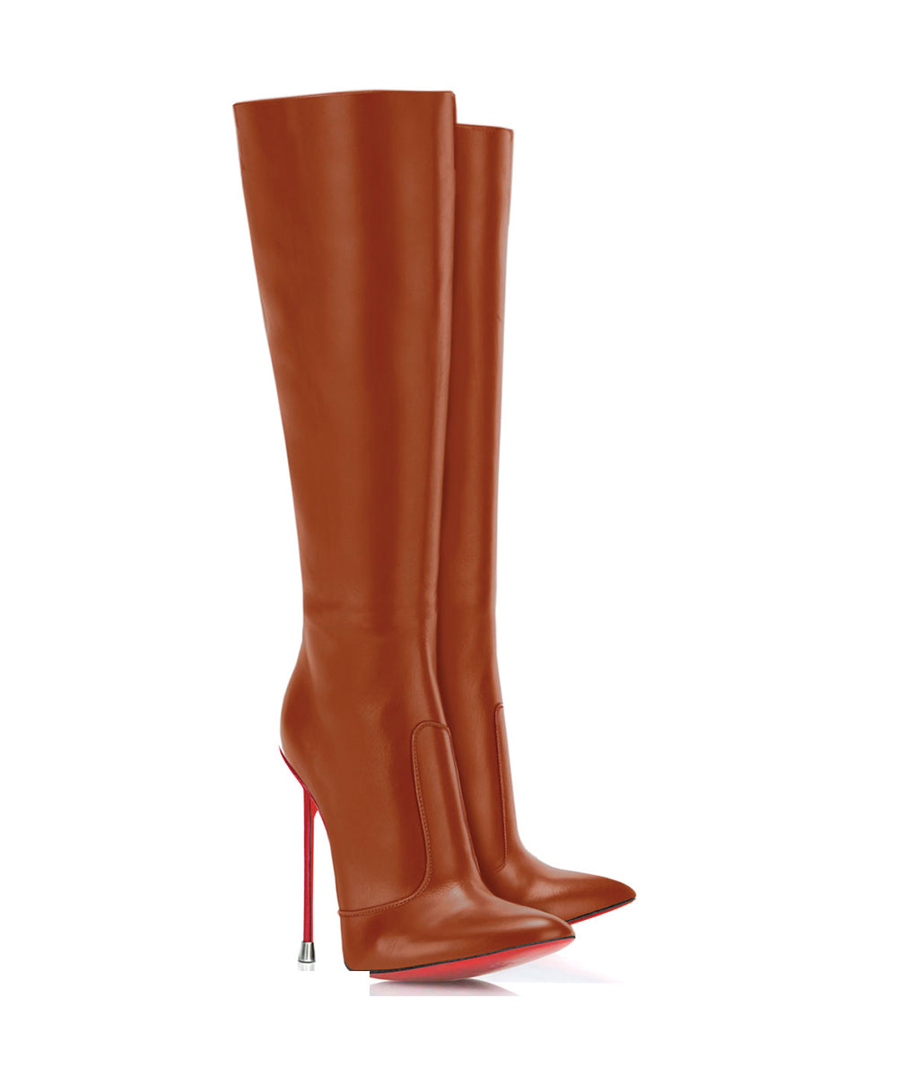 Dorbeon 120 Chocolate calf boots are crafted from genuine leather. Elegant design that defines, with smooth lines, the silhouette of your legs. This high pair of boots is designed with a thin stiletto heel and a short tip.These boots are made exclusively for each customer and let your own customization. You are unique an special, your boots too