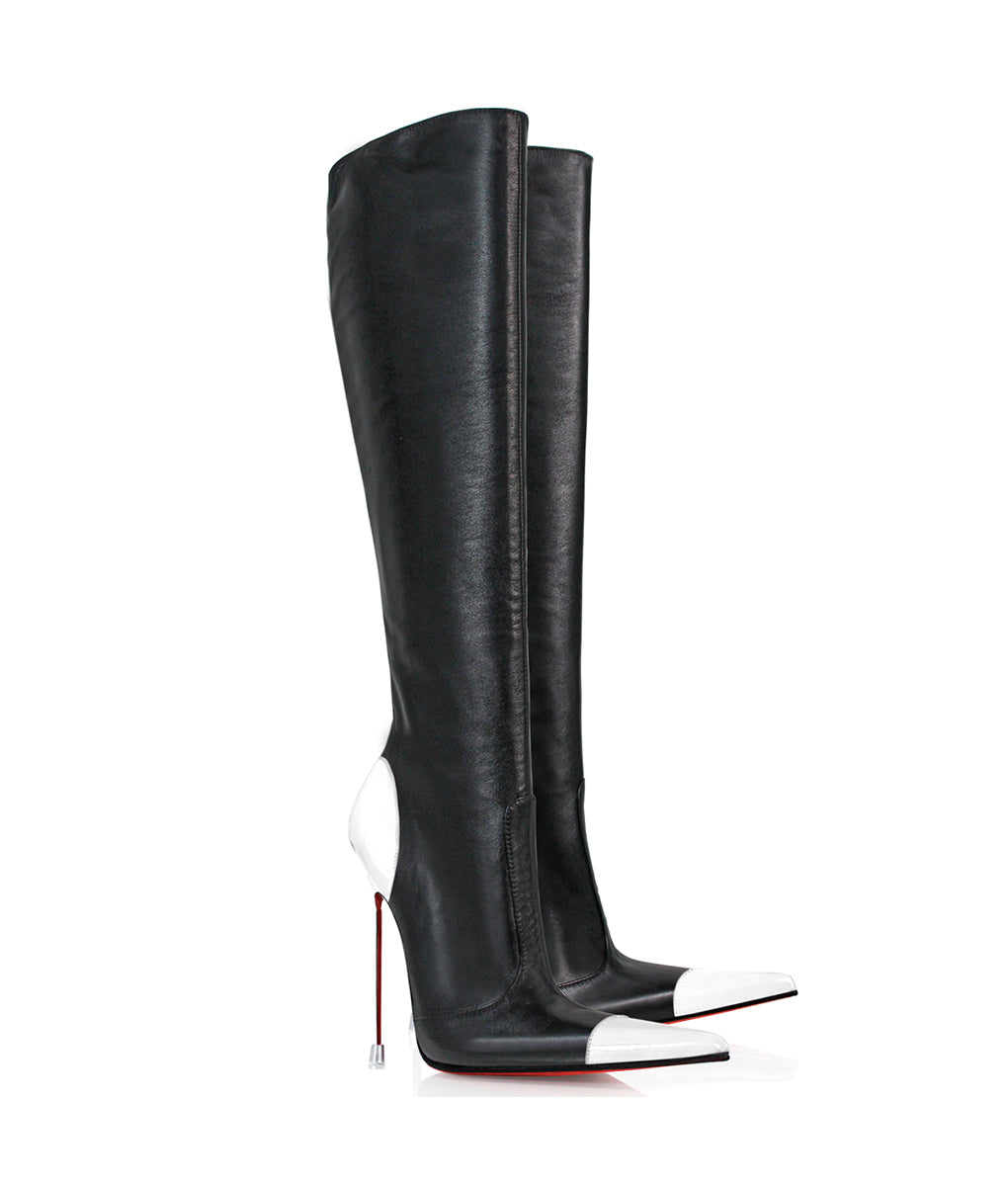 Drymash 125 Black & Red knee boots are crafted from genuine leather and Patent leather in the pointed and heel covered get a special touch of elegance . Exclusive boots with full personality, sure you will not be able to stop looking at them! These boots are made exclusively for each customer and let your own customization. You are unique an special, your boots too